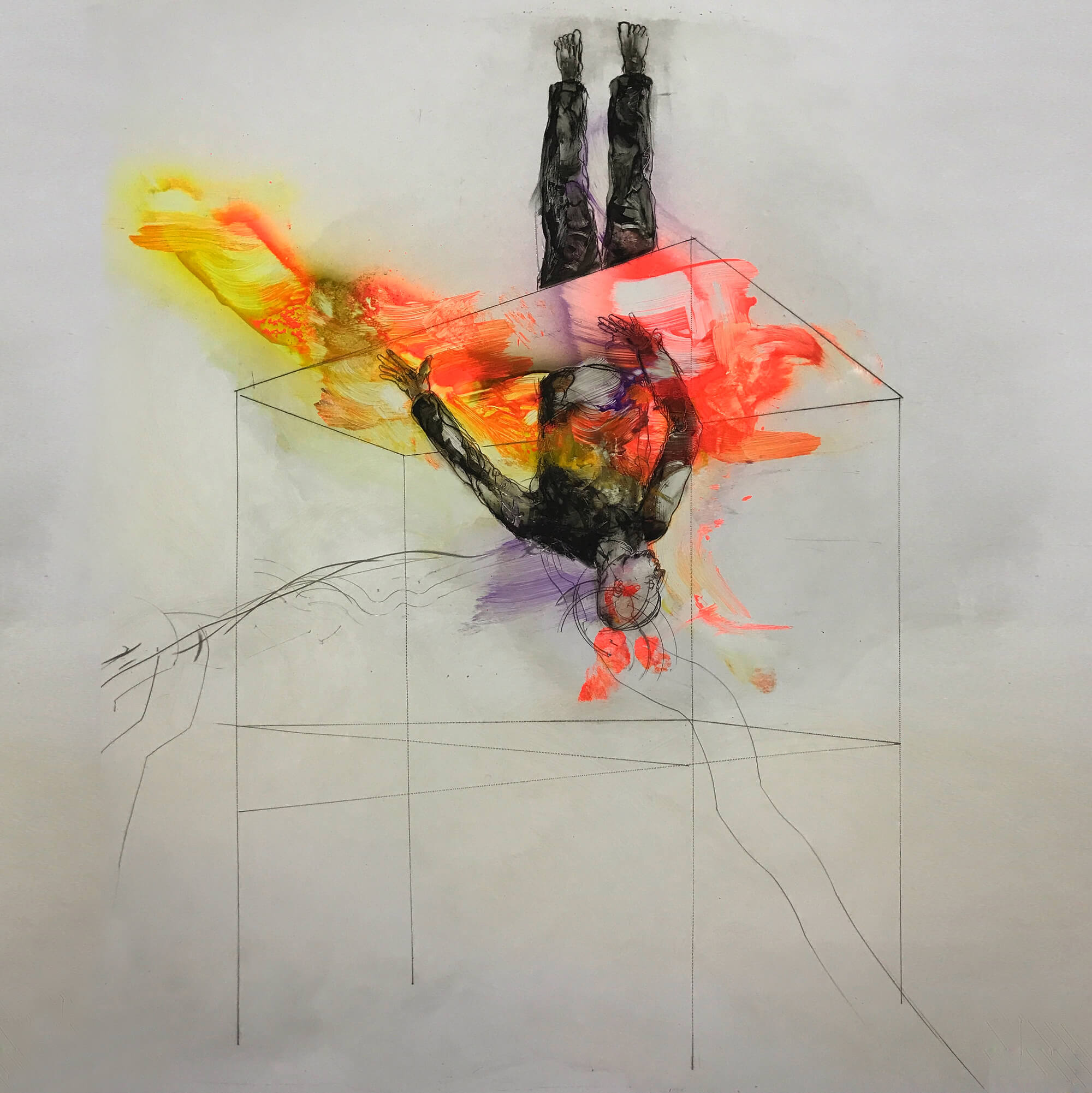 In this collection, where painting acts as a kind of guiding thread running through various disciplines, balance is a revolutionary idea in a confusing world. The act of falling in order to discover the depth of emptiness and understanding as a kind of acrobatics in immediate events.